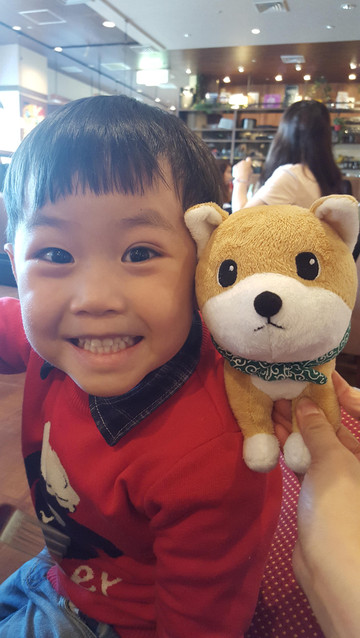 在大阪因为很多商店都关门了,我们在失望的时候就只看到一个叫OPA的商店,大部分都是时尚年轻女孩衣服,楼上有一层药妆,一层文具,我们在里面买了很多很多便签,贴纸,小本,笔等文具,日本的小文具真的可爱,结账的时候,壮抓过来一只小狗,跟我说,妈妈,这个小狗找不到妈妈了,我觉得它可像我了,我们带它回北京吧!这不是日本的明星狗么?小狗太可爱了,其实妈妈内心也是超级喜欢哈哈哈,我一脸严肃的说,那你要好好对它哦,壮点点头。OK 带走!