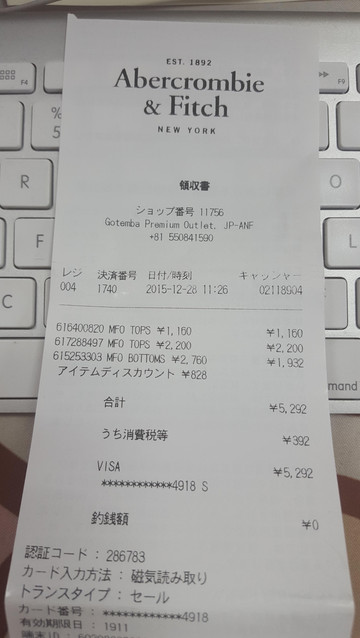 AF的衣服是在奥特莱斯无意中看到的,没有计划购买,买了两件夏天T-恤和一条短裤,超划算哈