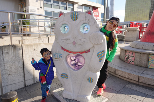 本来想坐地铁去台场,后来无意中发现这个水上巴士,很炫酷的,于是就买票了,一位130多,儿童也要票,不过不贵,39左右。从浅草走到码头很近,我们还到早了,在码头玩了一小会儿。