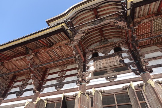 东大寺院内还有南大门、、三月堂、等。南大门有很著名的双体金刚力士像。二月堂能够俯视大佛殿和眺望奈良市区。