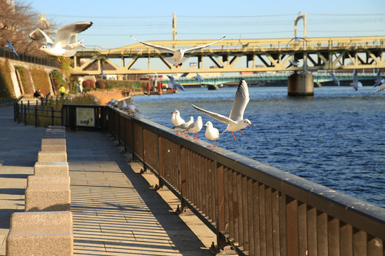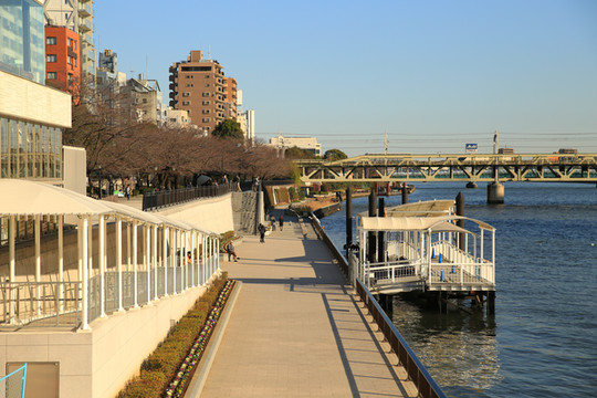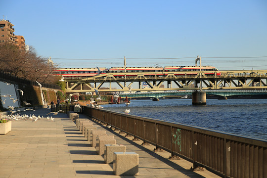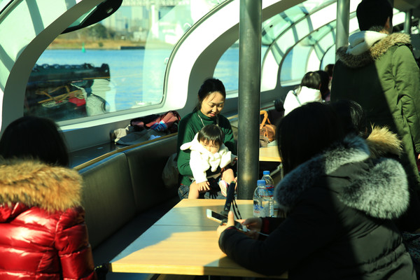 从浅草码头到台场码头一共1小时,中间还停一站上人,沿路观看河道美景,晒晒太阳,出来照个相,美哉美哉。