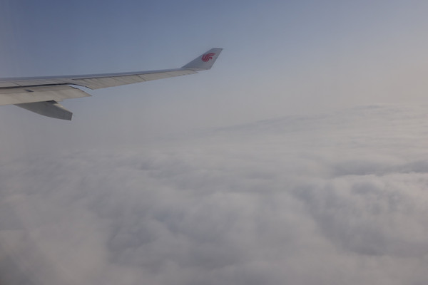 穿过厚厚的雾霾层,一冲上云端,马上就是蓝天白云了。