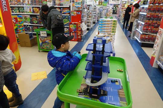 各种车啊玩具在通道摆放,这也是反斗城一大特色,壮玩的不亦乐乎。
