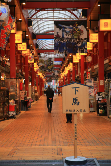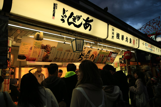 忙碌了一天,左右两边的店铺都关门了,可是长长的街道上,却干干净净,还有游客在照相驻足。我觉得这第一天日本跟我的印象真是不错,这要是换了北京的某些浏览地方,应该是纸屑遍地了吧,我们还是应该多多学习人家的优点呢~