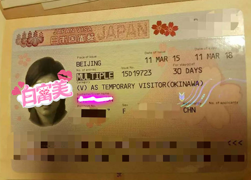 Multiple就是多次往返的意思,后面30天,是入境后停留时间,OKINAWA是冲绳,代表了通过入境冲绳获取的签证。
