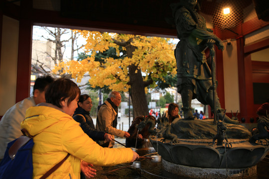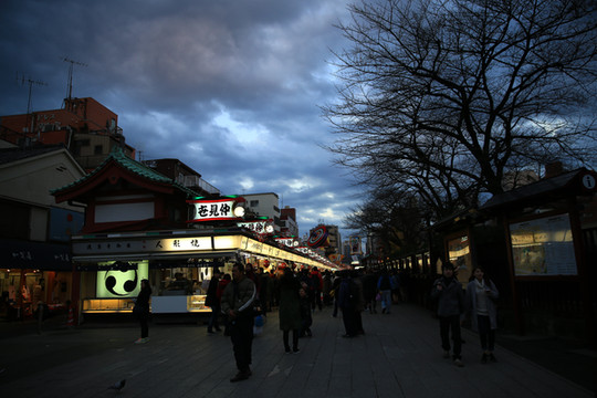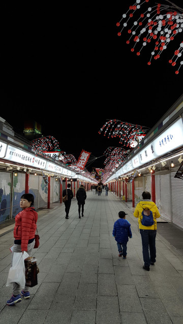 今天有点累了,浏览完毕我们还坐地铁延原路返回,可以从大街走也可以从浅草寺走,妈妈说,喜欢寺院里寂静的夜晚,于是我们又从寺里走(24小时开,其实是个小公园性质)。
