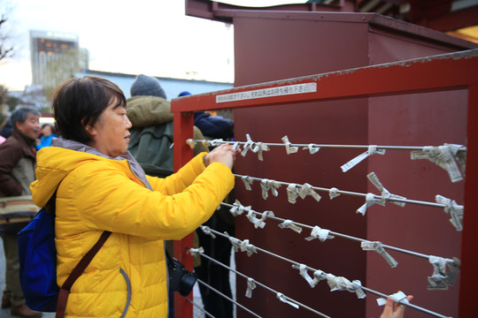 在寺院里花100日元许愿,许愿不是很好的可以把纸条拴在这里,让它随风去吧~