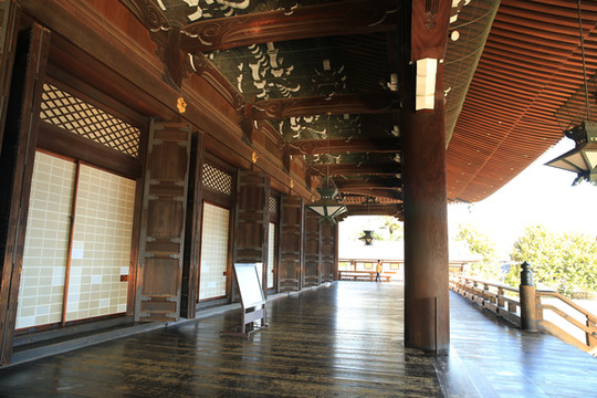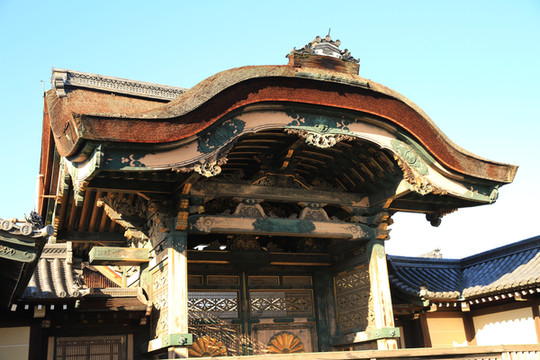 12月30日,今天去京都的几个很有名的地方:西本愿寺和。1591年,丰臣秀吉修建了这座寺庙,取名本愿寺,作为佛教净土真宗的新总部,这里曾经拥有极大的影响力,后来,德川家康害怕本愿寺的势力过大,对这一派系进行分解,于1602年建立了东本愿寺,而原来的本愿寺就是现在的西本愿寺。这一宗派据说目前在全世界有1万多座寺庙,1200万的信徒。两座寺庙结构,样式相同,西比东更宏伟,更大。到里面的御影堂都要脱鞋,放进旁边塑料袋后进去参观,里面大部分都是虔诚的信徒跪拜在佛像前。两个寺院相隔1公里左右,走路15分钟就可以了,没有门票费。建议先去东,后去西,然后从西门口坐4站巴士到二条城,但是很不幸从昨天开始连续三天关闭,没有看到第一任德川幕府将军家康在京都的这座寓所,二条城的装饰风格代表了当时家康的权利象征!从这里坐三站车再倒车两站就到了公园,这里特别开阔适合散步野餐,由于这时已经临近!1点,我们都饥肠辘辘的,所以走完一大圈后便出来觅食,壮说走不动了,要饿死了,于是对面的麦当劳便成为首选,这里的麦当劳600多一套,味道好像跟国内有点不同种类也多,还有蔬菜沙拉,橙汁是有颗粒滴那种,壮问我,妈妈我们吃的是什么啊,我说,这是汉堡,波儿个儿!壮说,是小鸟么?波儿的?我说,no,波儿个儿是汉堡不是小鸟,壮若有所思后跟我点头说,妈妈,我懂了,有个小鸟波儿的在天上飞,然后掉下来烤熟了,就变波儿个儿了![流汗][流汗][流汗][流汗][发呆][发呆][发呆][发呆]