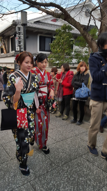 在京都买了两张市内巴士票,500一人,所有巴士当天免费乘坐,不过这里我们捡了个漏,当时买了票出门已经下午4点了,巴士司机没让我们把票塞到机器里,因为塞进去就要打当天的时间,于是我们第二天继续使用,看来晚上,巴士师傅不查那么严格并且看我们一老一小的也没有严格要求吧)