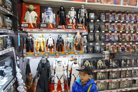 从这里过去还没到大敢达机器人之前有个很大的反斗城,一看时间还来得及就先进去逛了下,我个人感觉这里的东西比较多,玩具种类多,孩子在里面边玩边逛不亦乐乎,最后是给壮拽出来的,看上了很多国内没有的玩具,但是因为下午还要去银座就没买,问了大阪也有反斗城就准备去大阪买,事实证明是错得,因为我们忽略了2个问题,1,规模大小,2,元旦放假。