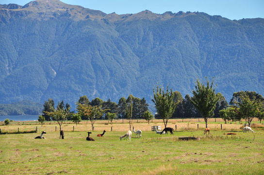 新西兰是位于太平洋东南部的一个岛屿国家,由于陆地构造隆升和火山喷发,使得其地形多变。山地约占总面积的一半,其余为丘陵和平原。有很多火山区,多瀑布温泉。南阿尔卑山贯穿中西部,最高峰为库克峰海拔3764米,南岛多冰川湖泊。由于气候温润,牧草丰美,畜牧业采用天然放牧。南岛景色更原始空旷,大多以畜牧业为主。