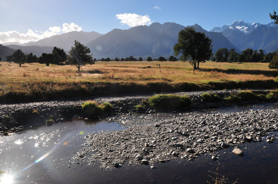 到了GREYMOUTH,也就是晚上住宿的小镇,有着整齐的街道和一个接一个的小店,但却安静整洁,因为这里的小店普遍关门早,基本下午5.6点左右就不营业了,可见当地人是多么会享受生活。在我们旅馆边上有一条不不知名的河流通向大海。站在河堤上,夕阳西下,影子被拉得老长。沿着河堤散步或是慢跑会是件舒心的事。