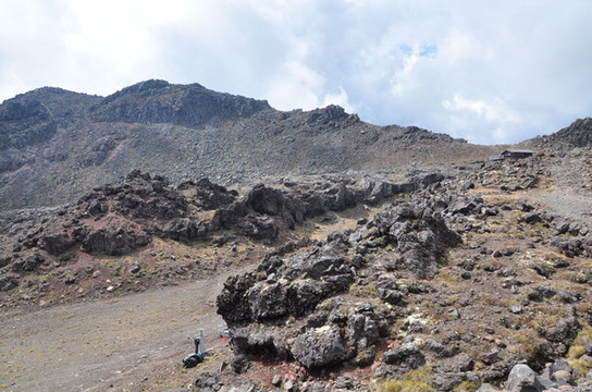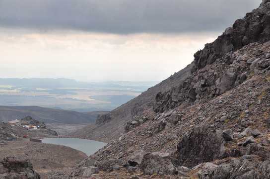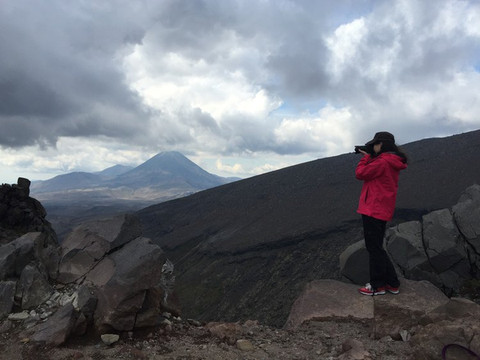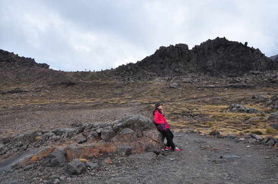 鲁阿佩胡火山(Mt. Ruapehu)是新西兰北岛的最高点,海拔2797 米,顶上终年积雪皑皑。我们在半山腰的咖啡馆里吃了午饭后往山上走去,在山顶缆车附近,徒步最短的30分钟线Meads Wall。置身于一片黑灰色岩石中,像是来到了外星球。眼前的场景空旷寂静带有荒凉感。这里曾是大片魔戒的取景地。
