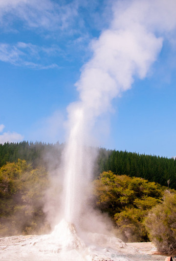 诺克斯夫人间歇泉Lady Knox Geyser,最不可思议之处就是可以人为的制造条件使得间歇泉喷发。每天都会定时表演,演出于每天上午10时15分开始,来自世界各地的游客围坐在看台上,工作人员会先对间歇泉做一番介绍,等把肥皂放进喷泉的那刻,奇迹就会出现,水柱就会慢慢涌出,然后渐渐上升,引起人们的尖叫声和鼓掌声。缘由是肥皂作为一种活性剂表面张力比水小,用这种方式引起泉水喷发是在20世纪初被关押在附近的囚犯所发现。水柱在1小时内升至20米高空,爆发力相对比较温和。