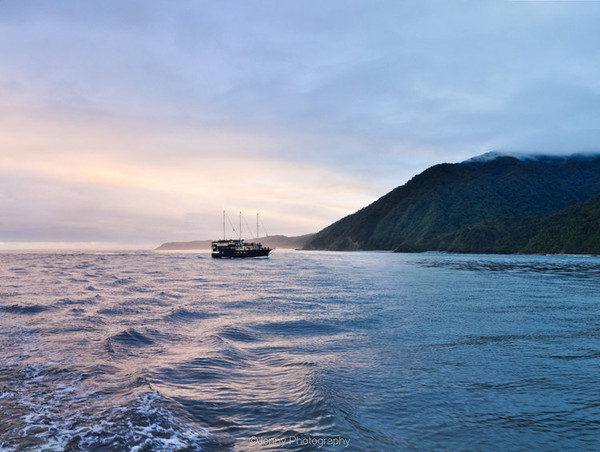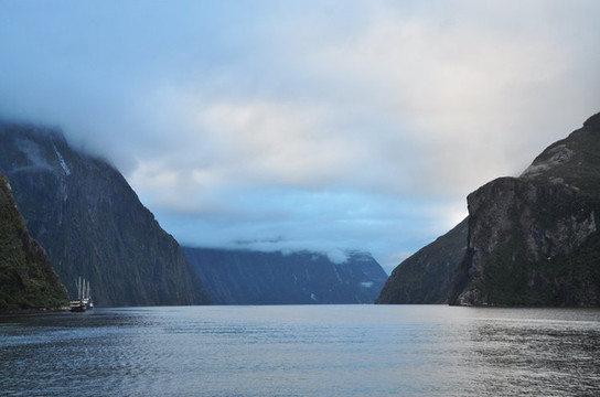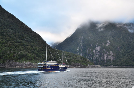 D8. 3/3 上午发车前往,中途在TeAnau湖边午餐,下午4点到Milford峡湾上船,参加半日游,夜宿船上。这个船Wanderer提供的餐饮相当不错。