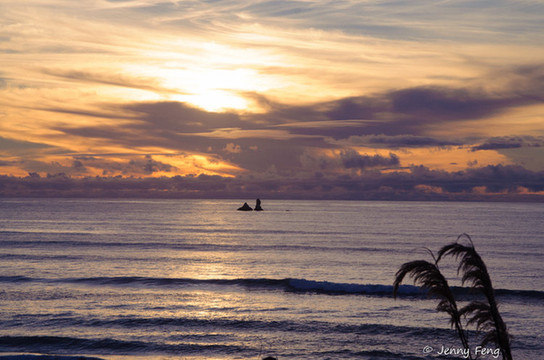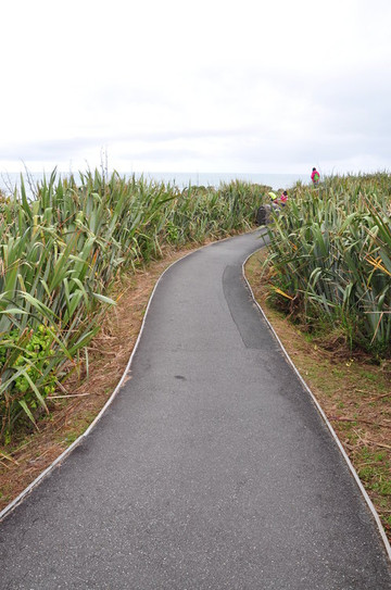 走过一段长满植物的步道来到海边看到这一奇特地貌,层层叠叠的石块像薄饼堆积而成.被石块围起的海域, 海浪冲击岩石会带来阵阵涛声,有时候浪会冲的很高.这样的地貌在涠洲岛的五彩滩看到过,也是类似的岩石.