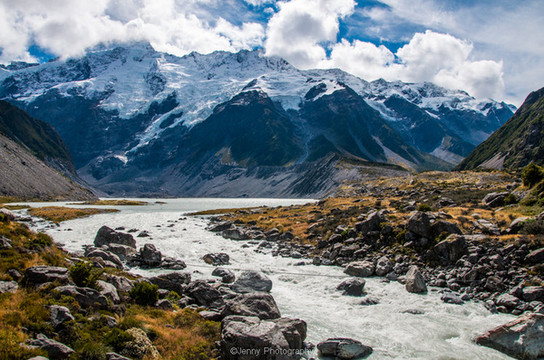 D12. 3/7当日天气不佳下雨,直接发车经Lake Pukaki前往Mt.Cook,下午徒步胡克山谷,天气晴朗。