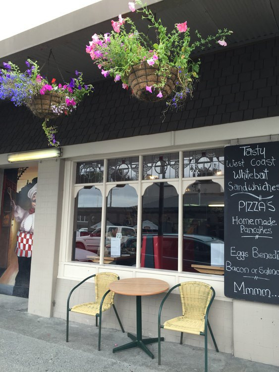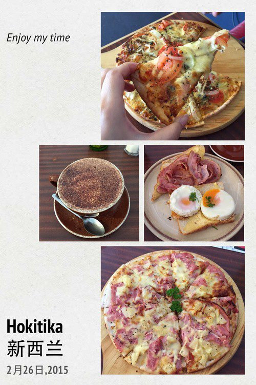 中午在Hokitika小镇午餐,这里的每个小镇都有一个钟塔,算是一个地方的标记。随便找了家小店,门口挂满了鲜花吊篮,简约清新,店员也很亲切,这里的人们都很友好。点了些PIZZA之类的填饱肚子,用料很足。