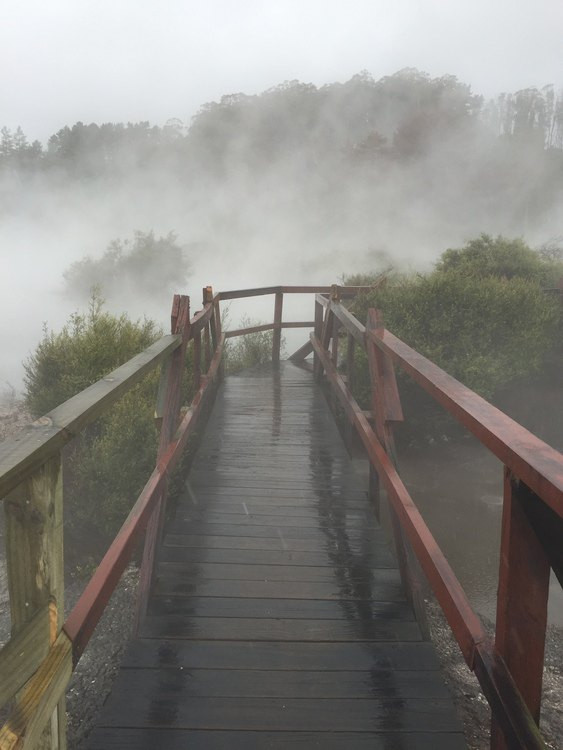 Day 17,Rotorua坐落于火山多发区,全市遍布地热温泉?,同时也是毛利人聚居区。上午大雨,市内随便逛逛。下午雨小了前往Whakarewarewa落,近距离感受地热特征,目睹了间歇喷泉和沸腾的潭水,雾气腾腾恍若仙境。既然是地热区,当然不能错过温泉?Spa,晚上在宾馆附近边上的Polynesian spa泡了温泉?,泡完全身滑溜溜,舒舒服服的入睡。今天还见识了新西兰第四代猕猴桃,够迷你还是红心的。