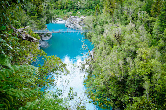 下午来到hokitika Gorge,穿过丛林看到一片碧玉似的湖,像一块蓝宝石镶嵌在绿色中。丛林中有吊桥和各种植物,美而静谧。
