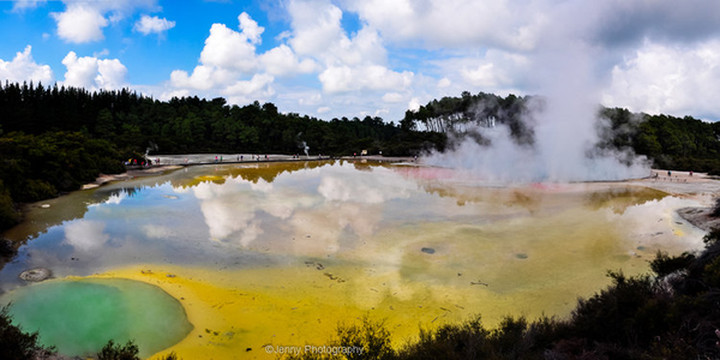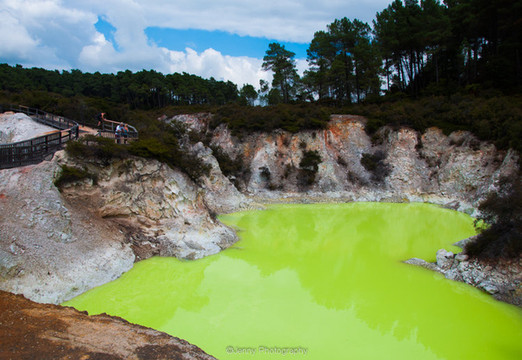 很有名的毛利村,当时整个村庄基本被火山喷发给毁了,很多村民不幸遇难。现今这里形成了地热地貌并作为市中心的一处景点。如今还有村民居住在里面,不知道他们每天闻到如此浓烈的硫磺味是什么感受。我们去的比较晚,错过毛利人的表演,地热的景观肯定不如我们第二天去的Wai-O-Tapu。30多纽币的门票也比较贵。