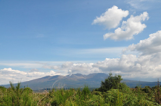 能看到远处的火山还在冒着热气,不断吞吐着白烟。