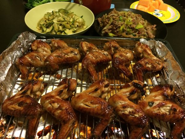在家里的自制鸡翅 烤箱烤下,出炉的时候涂点蜂蜜就金黄了