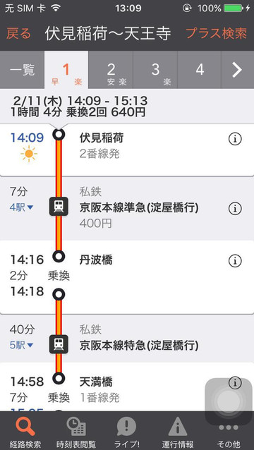 日本此行,除了Google地图,另外推荐给大家一款好用的日本交通APP【换乘案内】,在大阪的这几天,除了google地图,就是靠这个APP,需要注意的是,软件里面的目的地名字要跟日本地名一模一样的,日本大多是繁体字,但有些又会跟繁体写法不同,所以你最好手持一份当地地图,对照着地图输入地名,用下来的确很方便,也很精确,按照班次换乘,会在规定时间内抵达,严谨体现在分秒。