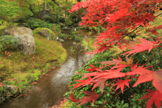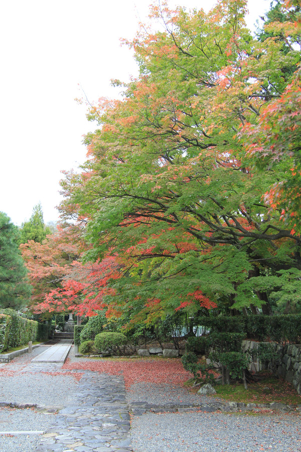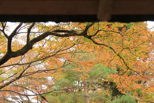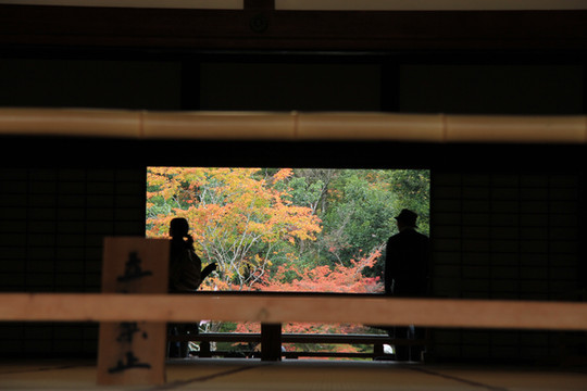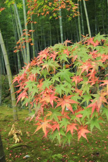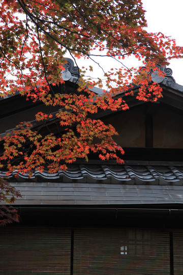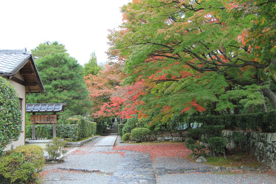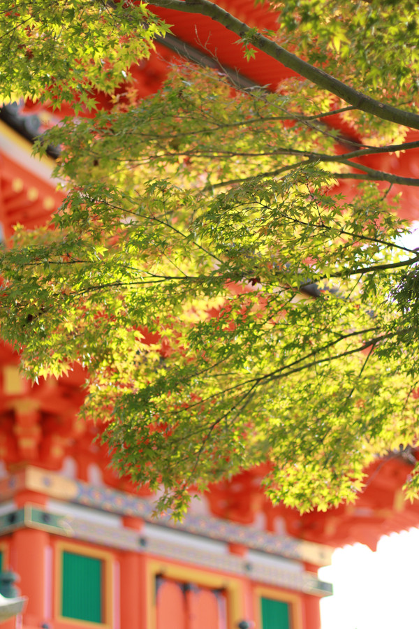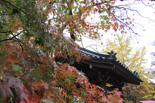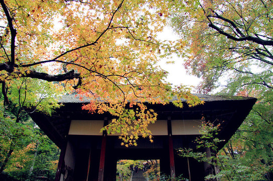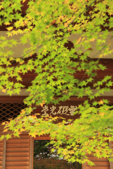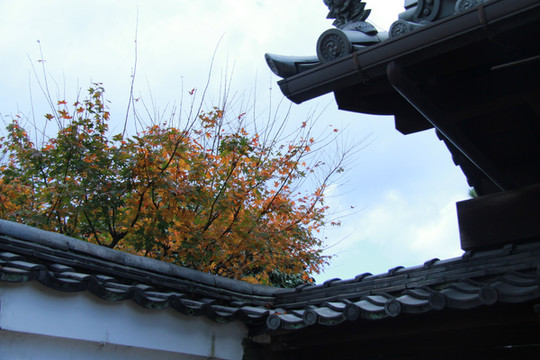 寺门前的枫叶跟寺院相得益彰,完美