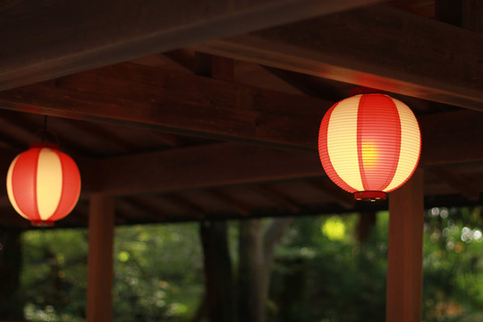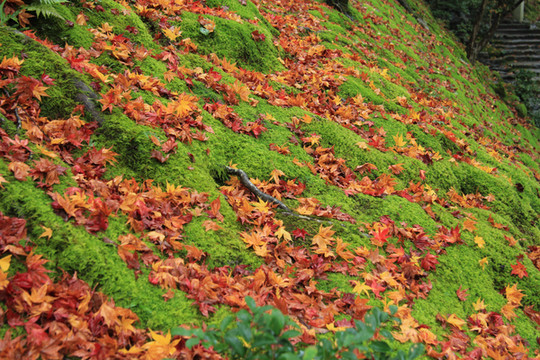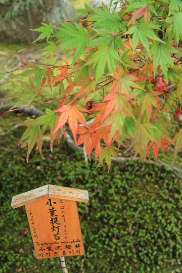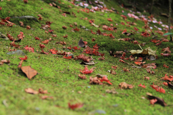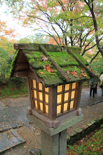 古灯青苔相伴,偶有零落的枫叶
