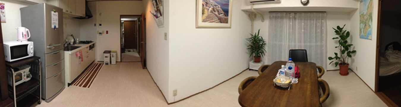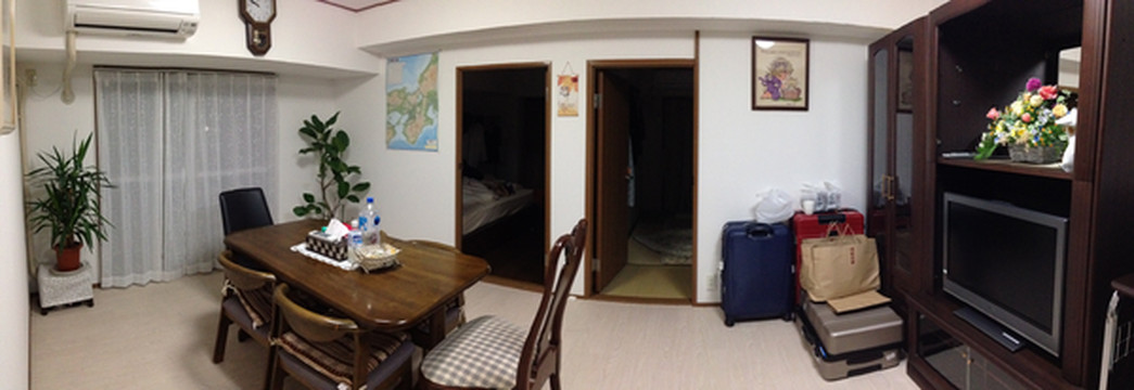 到了天王寺地铁,因为对地形不熟,结果6个人拉着箱子绕了点路,最后还是房东太太来接我们的。我们此行住的是民宿,是一位台湾太太和家人打理的,三房一厅两阳台一浴室一卫,这房子在日本算大得了,适合朋友结伴小住!