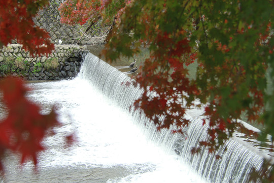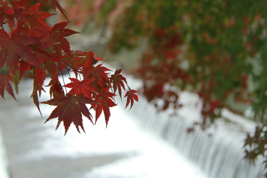 枫叶依水而伴
