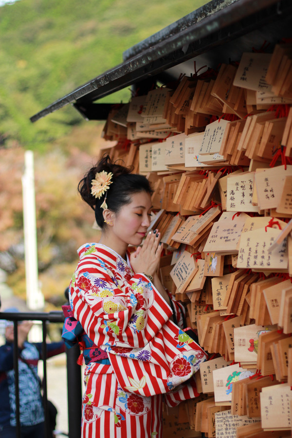 秋,秋,秋,被红枫簇拥的清水寺,听说这里的祈愿很灵验,求签100日元,吉签记得带回来喔