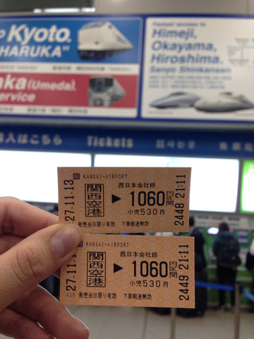 Day1:2015/11/13 上海--CA163 17:30起飞,3H左右到达关西国际机场