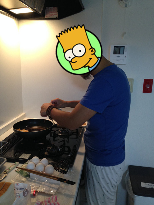 大厨苏醒了,开始大显身手!虽然没有油,大师居然还煎了培根、荷包蛋,张罗了六口人的早餐,手艺了得,想必在家一定勤练厨艺,必须给赞!