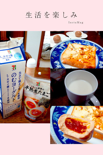 营养早餐:三明治+酸奶+温泉蛋,都是前一晚在7/11买的食材