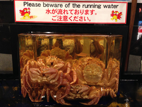 入口大厅处,有个大玻璃缸,美味的蟹蟹有点小残古