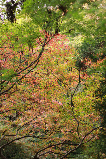 园中的枫叶颜色已经开始红黄交错了