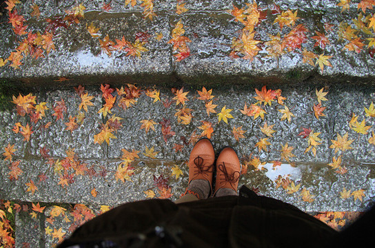 枫叶落在台阶上,没有任何修饰,却美了一秋天