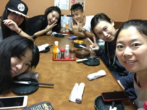 听说日本的压力也是很大的,所以下了班咪咪小酒,吃吃烤肉也是常见的活动,Cheers,庆祝第一顿,干杯!
