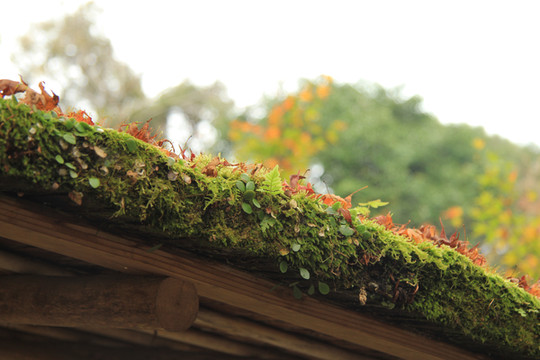 院内是古色古香的木质建筑,屋檐上的青苔,日复一日,年复一年,已积如绿毯
