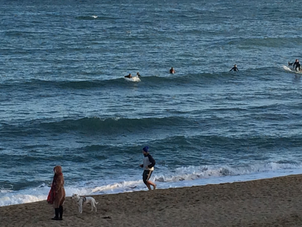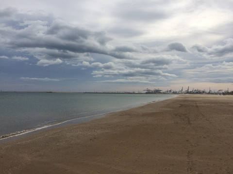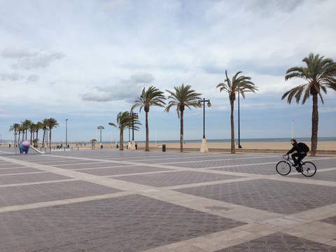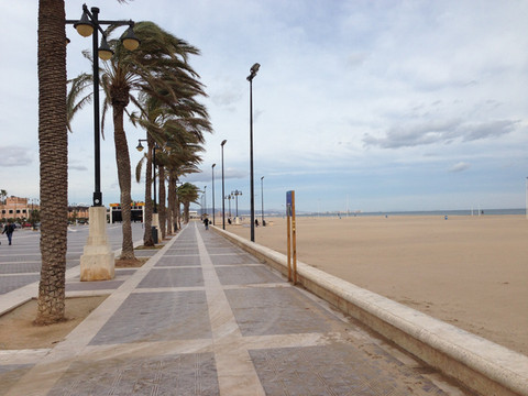中午便到了巴伦西亚的海滨,不料正值大风,沙飞树摇游人躲避,也不能到海滩上溜达。