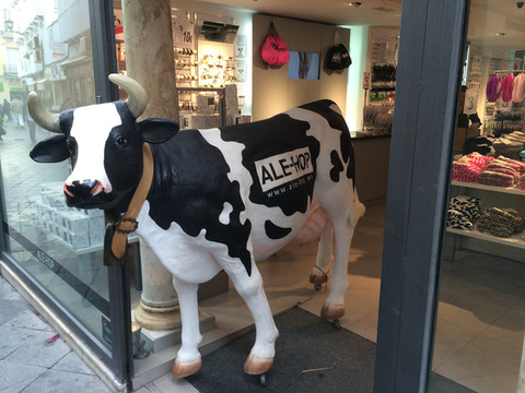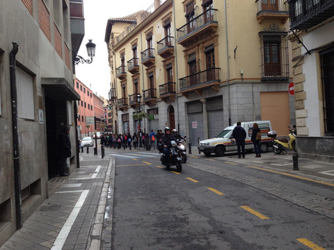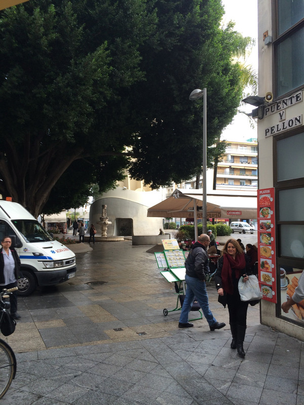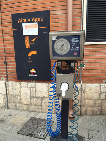 西班牙停车白线车位免费,绿线车位供特殊人群使用,蓝线车位限时免费,黄线是收费车位。虽然路边有不少蓝、绿线车位是空的也不敢停,还是要把车开到划黄线的停车场里去。这个停车场是自助付费,观察了其他人怎样缴费,于是开始操作,收费机显示屏上显示的是当前时间,当投币进入显示器上显示的是你投入的钱可以停到时间,几乎用光了身上硬币(4欧多)显示屏显示17点,时间应该足够,按按钮打印出停车票,还要将停车票放在驾驶室前挡风玻璃处以备查看,如果抽查是没停车票那就等罚吧。
