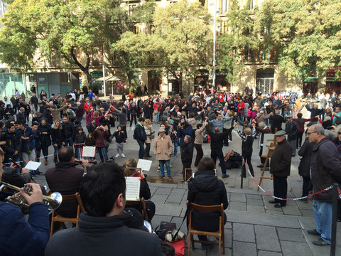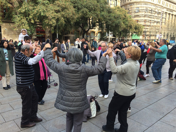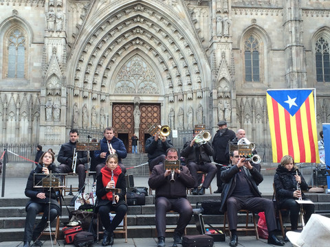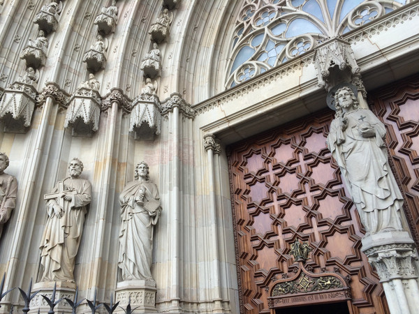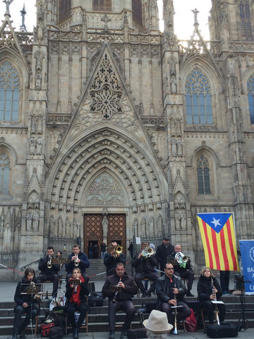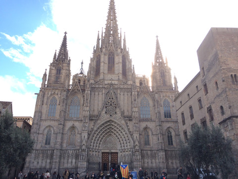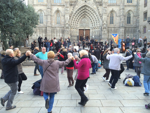 教堂前的广场舞:已有几个世纪的历史,位于老城哥特区,是天主教巴塞罗那教区的主教堂,教堂里一片肃穆,教堂外的广场确是另一番热闹景象,随着乐队奏出的乐曲,不断增多增大的圈子跳起欢快的舞步。