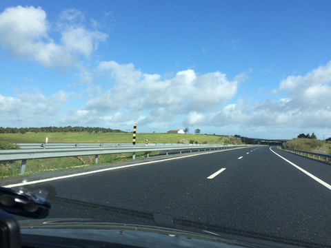 塞维利亚出发一路向西进入葡萄牙,路况还不错。葡萄牙境内高速公路收费方式有自动取卡交费和人工收费,还有一种是电子收费(就像国内的ETC)绑定银行卡,对本地车很方便对外国车就比较麻烦,入境时一不注意开过了办卡点,当车辆驶过只有电子收费的路段,车牌号被摄像头扫描记录,在一周之内需要到邮局缴费。我们就是这种情况,到葡萄牙邮局排长队、效率低,最后发电邮问了情况,好不容易在网上交了费。