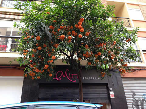 巴伦西亚盛产柑橘,连大街上的行道树也是此物。