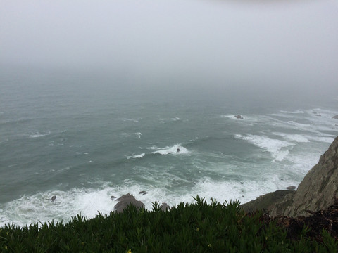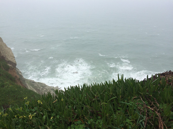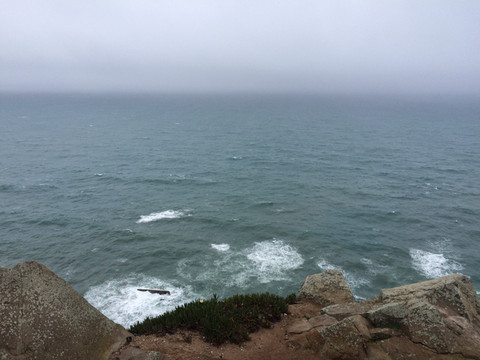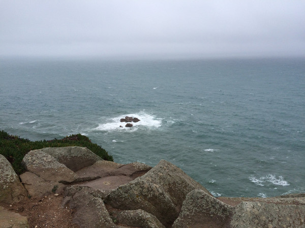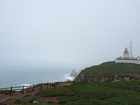 葡萄牙的罗卡角位于欧亚大陆的最西端,再往西越过浩瀚的大西洋就是美洲大陆。我们到海边正逢大雾,能见度可能不到二十米,大灯雾灯一起开才勉强前行,这种情况就全靠导航仪引导才把车开到了大西洋岸边大雾弥漫的罗卡角停车场。当地人说估计大雾是间隙性的,持续一段时间就会散去,于是喝咖啡等待。