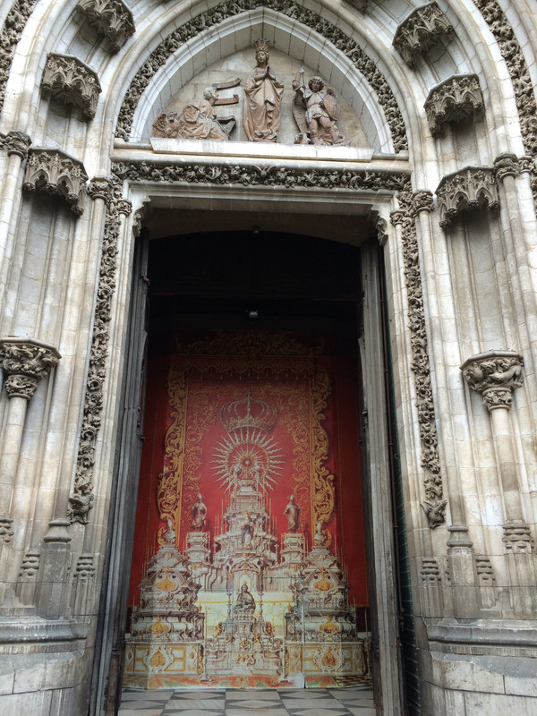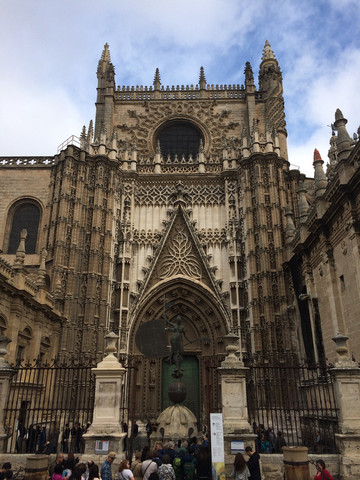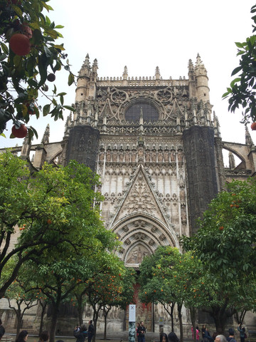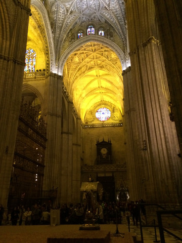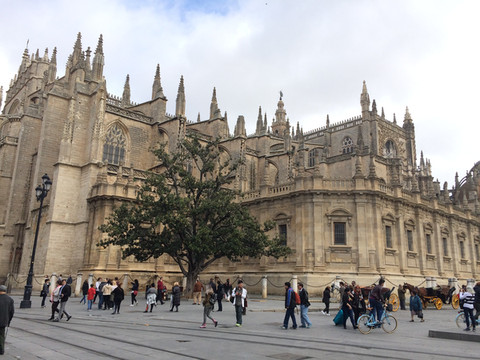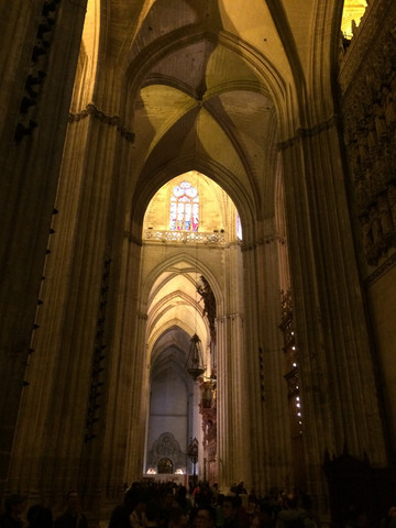 塞维利亚主教座堂:建于中世纪宏大的哥特式建筑,是在一座清真寺的基础上改建,据说规模在欧洲是基督教教堂第三,天主教教堂第一。感觉到这里的宗教氛围非常浓厚。