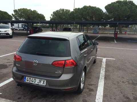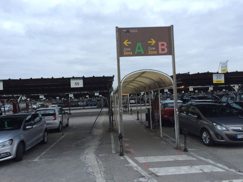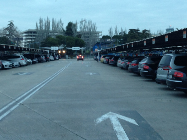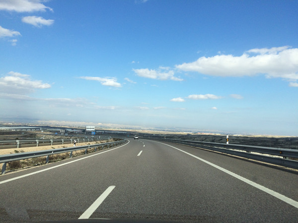 马德里机场有四个航站楼,定车网站上有几个人说是到T1后还要到T4取行李出关,一度比较纠结究竟是在T1取车还是在T4取车,最后按常理预定在T1取车。租车公司停车场与机场出口只隔一条马路,租车柜台给了车钥匙自己去停车场取车。由于坐了十多个小时的飞机,大家都有些发懵,花了好些时间才找到车,上车后又在停车场转了好几圈才开出了机场。