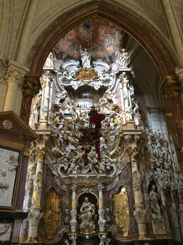 :天主教西班牙教区红衣大主教的驻地,哥特式的建筑和教堂内的雕塑都精美大气。感觉所去过的几个教堂,虽然主题一样,但建筑和雕塑都各具特色,毫不雷同。与其他教堂相比较,这个教堂的雕塑和绘画更具有回归自然的生活气息,似乎不再是严肃刻板的中世纪宗教文化,处处闪耀着文艺复兴时代的艺术光芒,让人感觉到宗教艺术也可以让人赏心悦目。可惜没有中文解说器,仅凭感觉而言。